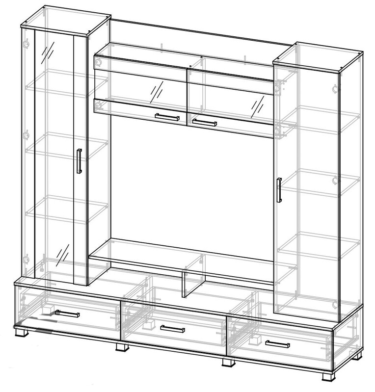 • Фасад и корпус стенки изготовлены из ламинированной ДСП