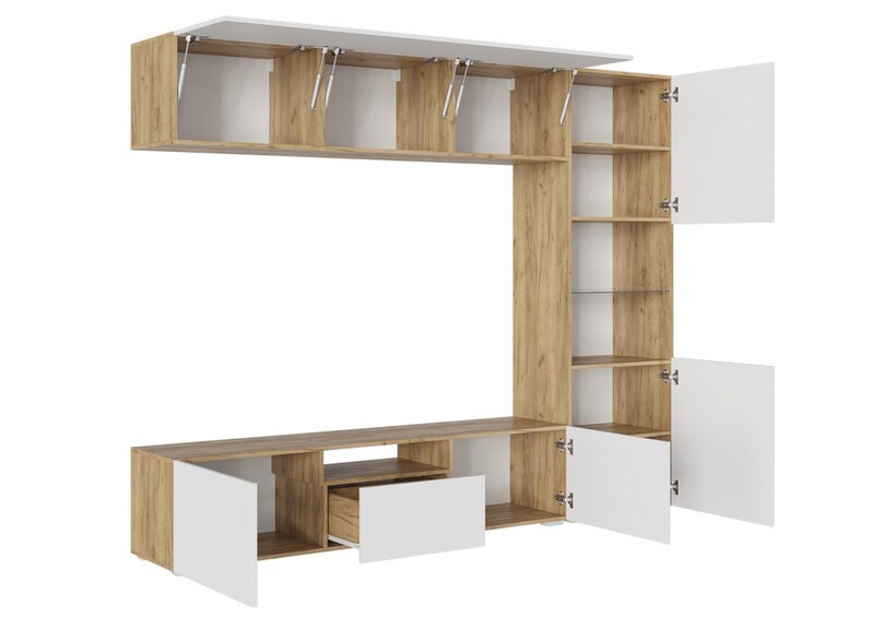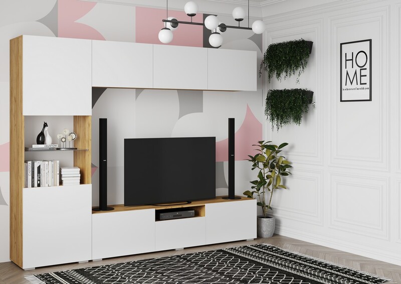 Стенка из ЛДСП СТЕНФОРД НМ идеально впишется в интерьер вашей гостиной за счет своей элегантности и практичности.