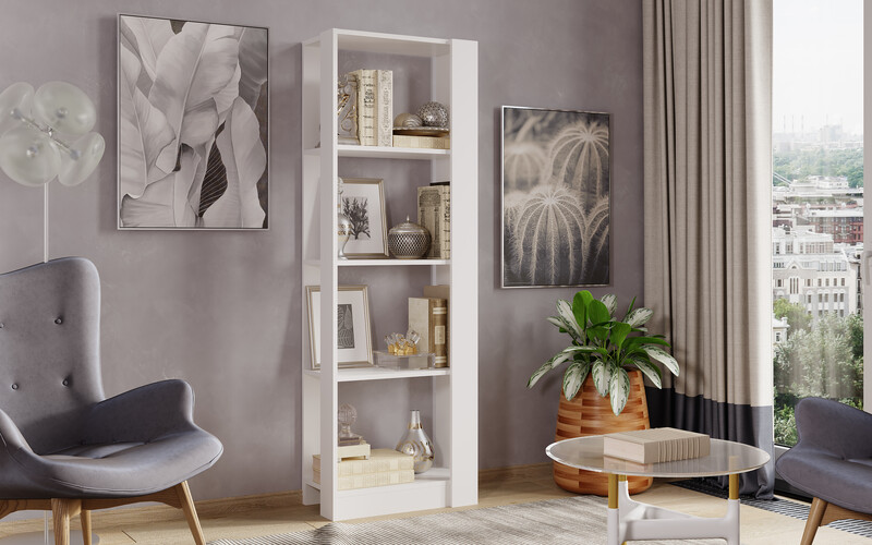 Оригинальный дизайн стеллажа №3А прекрасно будет смотреться в комнатах, оформленных в стиле лофт. Его сильная сторона – наличие четырех объемных высоких полок, на которых можно хранить даже габаритные предметы.