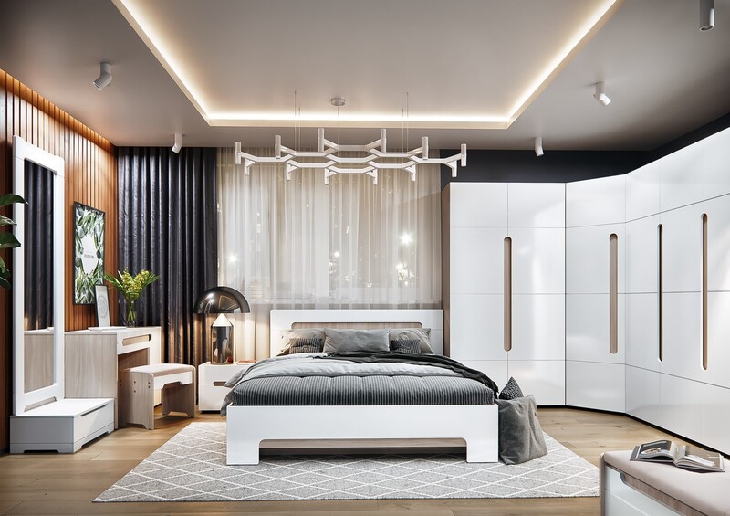 Каркас выполнен в светлых тонах с имитацией текстуры дерева и глянцевого белого фасады из МДФ. Благодаря такому оформлению кровать будет гармонично смотреться в любом интерьере. При выборе этой модели закажите и другие элементы мебели из серии «ПАЛЕРМО».