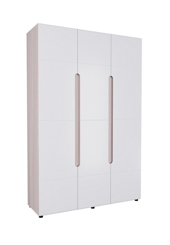 МК Стиль. ПАЛЕРМО-3 Шкаф 3 - створчатый ШК-042 (Н 2300) Корпус - Ясень Шимо светлый Фасад МДФ - глянцевая Белый (5 мест) ОД926+ОИ653