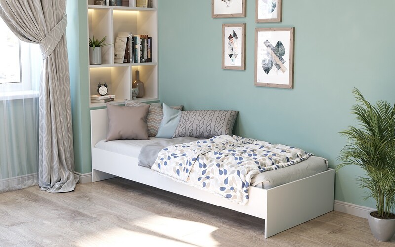МК Стиль. ЛАЙТ Кровать КР-001 (Прямоугольный щиток) 840 мм (840х2032х674) Корпус - Белый (Гладкий) ОД872