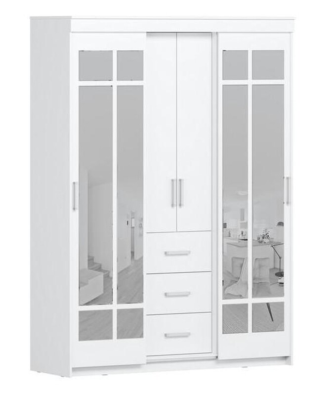 МК Стиль. Эва Шкаф 3х створчатый ШК-019 Корпус - Белый (Гладкий) Фасад ЛДСП - Белый (Гладкий) (4 места) НК532