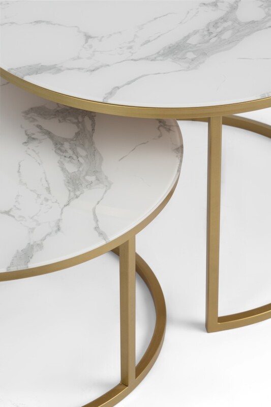 Stella. Стол журнальный Эрвин ФП Золотой мрамор, опора Золотая (1 место)