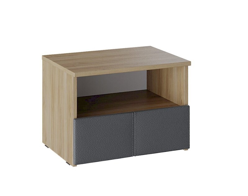 Bonmebel. Тумба прикроватная "Доминика" - дуб сонома трюфель/кожзам коричневый (1 место) СНЯТО