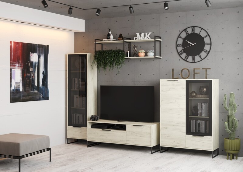 МК Стиль. Лофт Стенка НМ-001 Корпус - Дуб Крафт белый Фасад ЛДСП - Дуб Крафт белый (5 мест) ША860 СНЯТО