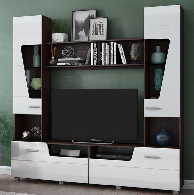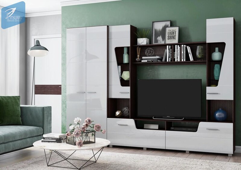 МК Стиль. МОНИКА Стенка Корпус - Венге Фасад МДФ - глянцевая Белый (8 мест) ОД902 КАТЕГОРИЯ А