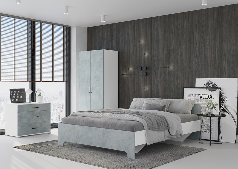 Горизонт. Victor Кровать 1,6м белый/бетон (2 места)