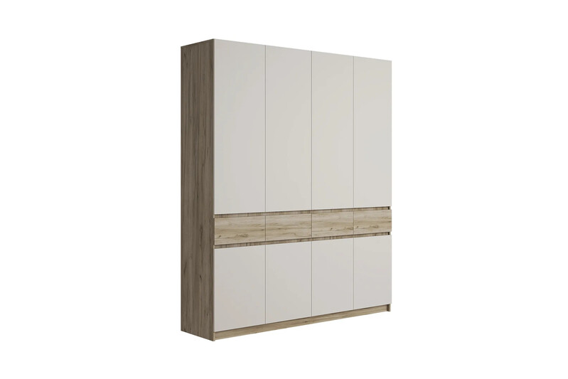 МК Стиль. БОСТОН ШК-004 Шкаф 4-ств. ЛДСП (Комплект) Корпус - Дуб Крафт серый Фасад ЛДСП - Кашемир 5981 BS / ЛДСП Дуб Крафт серый АВ8 153 (6 мест)