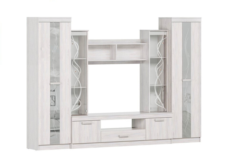 МК Стиль. АТЛАНТИДА-2 Б Стенка Корпус - Дуб Крафт белый Фасад ЛДСП - Дуб Крафт белый / Дуб Крафт белый (9 мест) АВ4 581