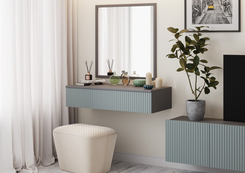 МК Стиль. СКАНДИ Тумба консольная ТМ-001 (МДФ) Корпус - Серый Шифер Фасад МДФ - матовая Грин Грей Софт ЭЧ999