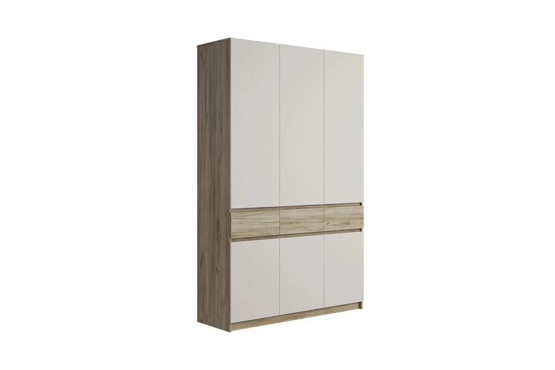 МК Стиль. БОСТОН ШК-002 Шкаф 3-ств. ЛДСП (Комплект) Корпус - Дуб Крафт серый Фасад ЛДСП - Кашемир 5981 BS / ЛДСП Дуб Крафт серый АВ8 117 (5 мест)