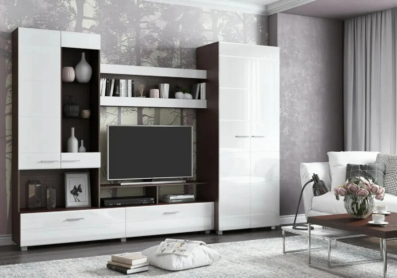 МК Стиль. КАМИЛА Стенка Корпус - Венге Фасад МДФ - глянцевый Белый (10 мест) ОД910