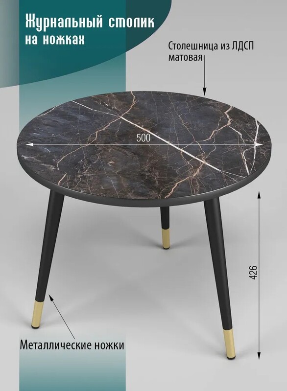 Журнальный столик SANTREK HOME «Грация» Черный/Черный ЛДСП 500*500*426, ножки металл