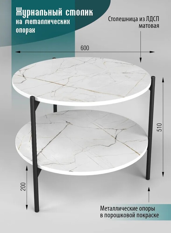 Журнальный столик «Шафран» Белый/Черный ЛДСП 600*600*510, ножки металл