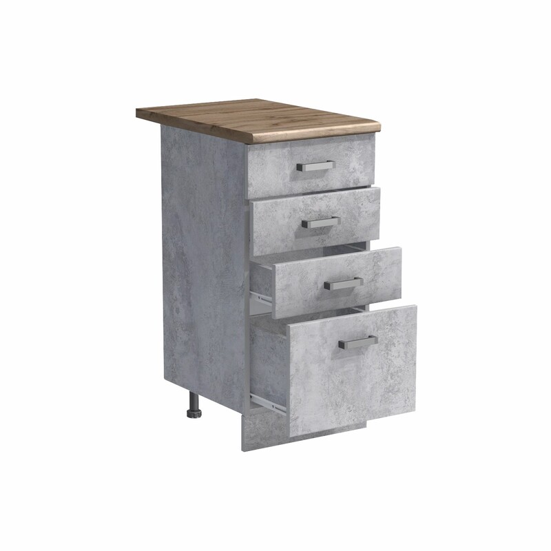 Рабочий стол 40 цвет Бетон (3+1 ящик) столешница Дуб вотан SANTREK HOME (ЛДСП)