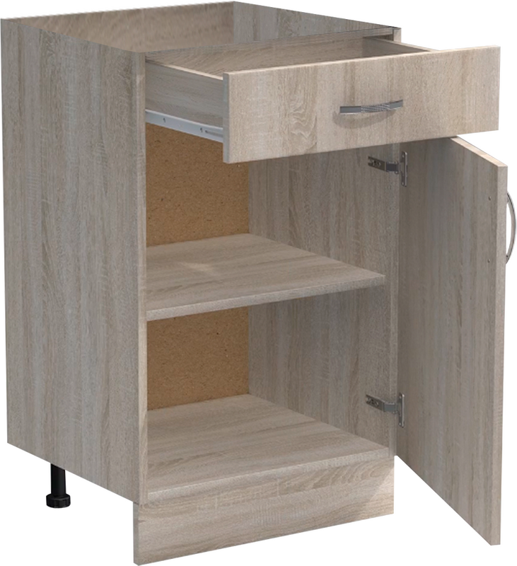Модульная мебель из высококачественной ЛДСП - это практичный и экономный выбор для кухонь. В ассортименте компании представлены тумбы, рабочие столы и навесные шкафы (с полками или сушилками на выбор). Мебель различается по размеру и цвету материала. Преимущества мебели: - Кромка ПВХ; - Глубина тумб — 440мм, что позволяет устанавливать изделия не вполтную к стене, оставляя место для канализационных труб; - Цоколь позволяет избегать контакты тумбы с поверхностью пола; - Регулируемые ножки.