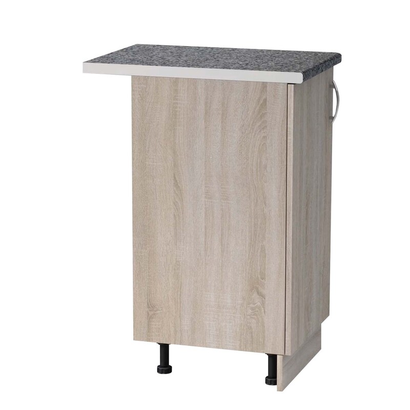 Преимущества: - Столешница глубиной 600 мм, высотой 26 мм (что совпадает с высотой накладной мойки) - Цоколь позволяет избегать контакта стола с поверхностью пола - Регулируемые ножки