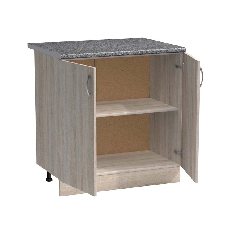 Преимущества: - Столешница глубиной 600 мм, высотой 26 мм (что совпадает с высотой накладной мойки) - Цоколь позволяет избегать контакта стола с поверхностью пола - Регулируемые ножки