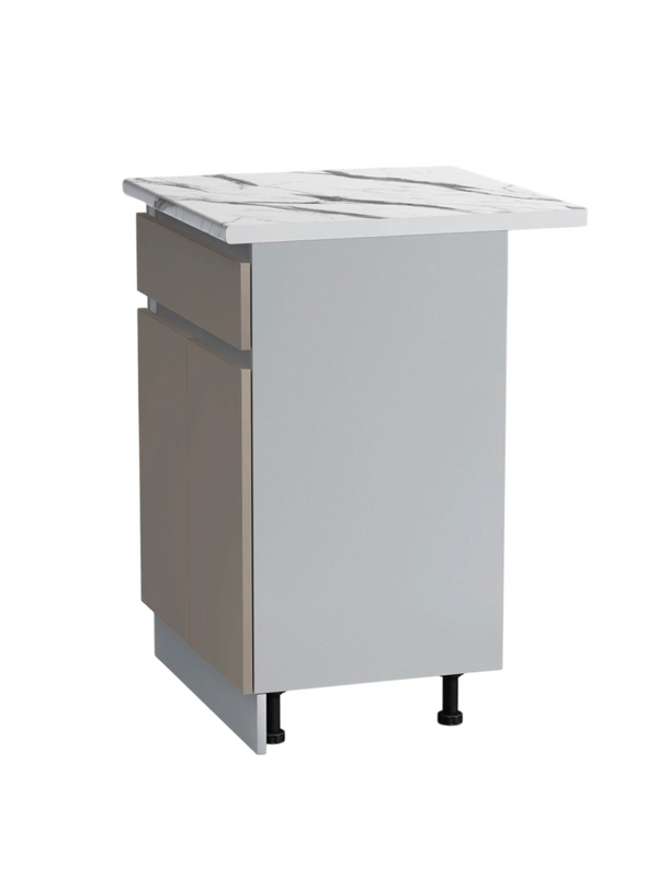 Преимущества: - Столешница глубиной 600 мм, высотой 26 мм (что совпадает с высотой накладной мойки) - Цоколь позволяет избегать контакта стола с поверхностью пола - Регулируемые ножки