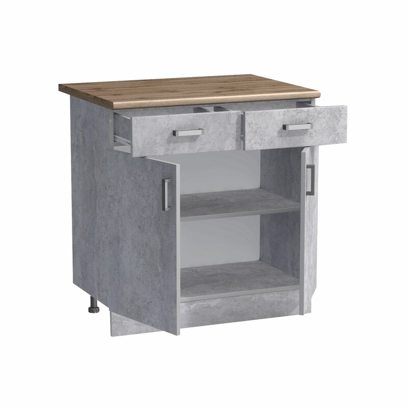 Рабочий стол 80 цвет Бетон (2 ящика) столешница Дуб вотан SANTREK HOME (ЛДСП)