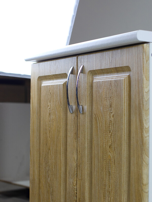 Модульная мебель из высококачественной ЛДСП с фасадом из МДФ - это практичный и экономный выбор для кухонь. В ассортименте компании представлены тумбы, рабочие столы и навесные шкафы (с полками или сушилками на выбор). Мебель различается по размеру и цвету материала. Преимущества мебели: - Кромка ПВХ; - Глубина тумб — 436мм, что позволяет устанавливать изделия не вплотную к стене, оставляя место для канализационных труб; - Цоколь позволяет избегать контакты тумбы с поверхностью пола; - Регулируемые ножки.