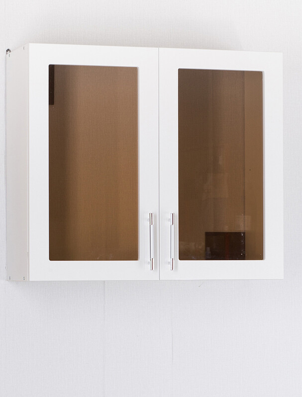 Шкаф для посуды 80 Белый металлик (со стеклом) фасад МДФ SANTREK HOME