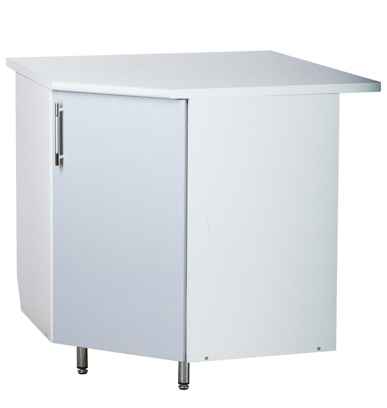 Рабочий стол угловой 85*85 (1 дверь) Серебристый металлик фасад МДФ столешница цвет (САХАРА) SANTREK HOME