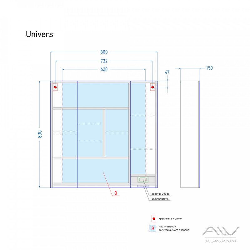 Зеркальный шкаф Univers 80 – удобный, стильный и практически незаменимый элемент коллекции мебели для ванной. Глянцевое покрытие предотвращает негативное воздействие влажности, и одновременно, гармонично сочетаясь с глянцем зеркал, делает пространство комнаты свободным и светлым.