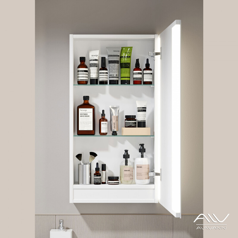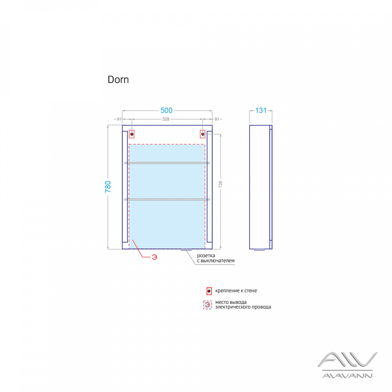 Зеркальный шкаф Dorn 50 выполнен с применением уникальной технологии подсвечивания фасада LightFasade. Свечение у самого края фасада, изящный рисунок, супер-яркие led-лампы создают особую атмосферу.