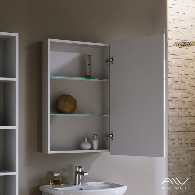 Белый зеркальный шкаф Vittoria 55-01 для ванной станет незаменимым предметом мебели в любом стиле интерьера, украсив собой помещение и помогая организовать хранение необходимых предметов. Внутри шкафа – две стеклянные полки.