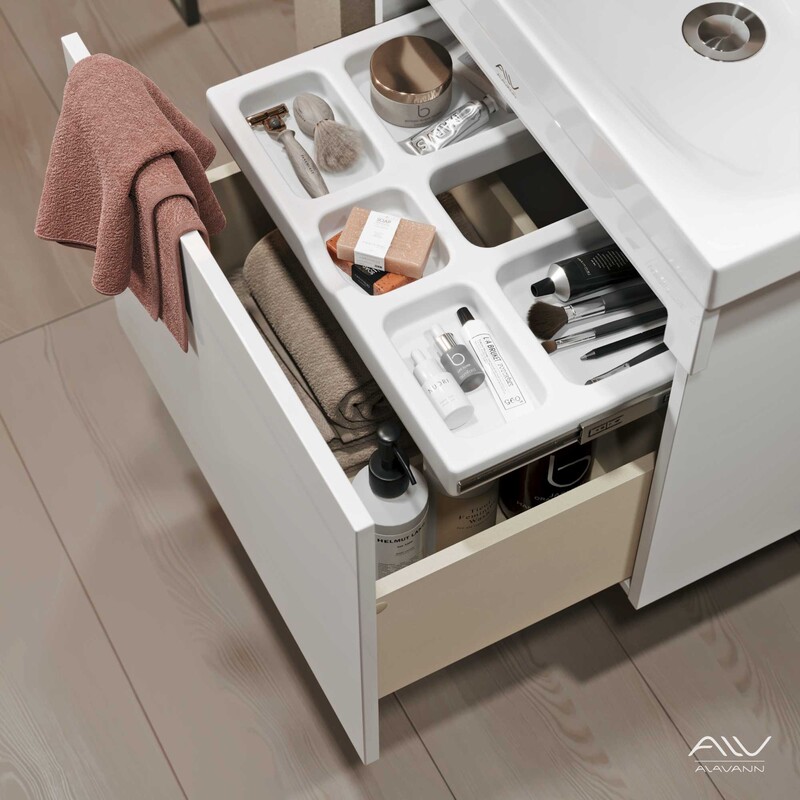 Тумба с раковиной Cosmetic 60 белая создаст идеальные условия для хранения косметики и средств для купания, не нарушая визуальной гармонии интерьера. Компактная подвесная конструкция не требует лишнего пространства, за счет чего отлично вписывается в ванную комнату небольшого метража. Корпус из влагостойкой ЛДСП обеспечивает стабильность формы изделия даже при длительном нахождении во влажной среде. Просторный выдвижной ящик и встроенный органайзер для аксессуаров добавляет умывальнику функциональности. А замена выпуклой ручки на «невидимый» зацеп подчеркивает его актуальный дизайн. Петли с доводчиками, производство Hettich (Германия).