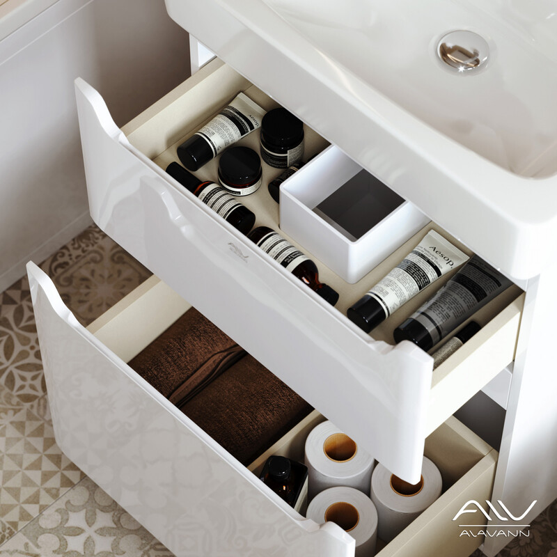 Белая тумба Lana 60 с гладким фасадом и двумя выдвижными ящиками с декоративными зацепами является образцом современного дизайна, практичности и функциональности. Вместительные ящики из ДСП с применением фирменного материала Твист, с удобными доводчиками плавного закрывания, позволят разместить в них все необходимые принадлежности в ванной комнате. Корпус тумбы Lana изготовлен из ДСП, фасад - из МДФ. Все изделие покрыто влагостойкой белой глянцевой эмалью. Это гарантирует длительность эксплуатации тумбы в условиях повышенной влажности. Производитель оставляет за собой право без предварительного уведомления покупателя вносить изменения в конструктив или технологию изготовления изделия, которые не влияют на функционал изделия.