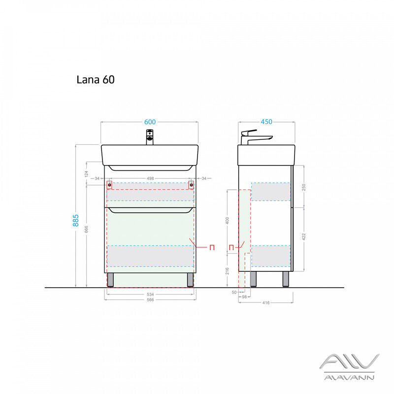 Размеры без умывальника (ШхВхГ): 566х790х451