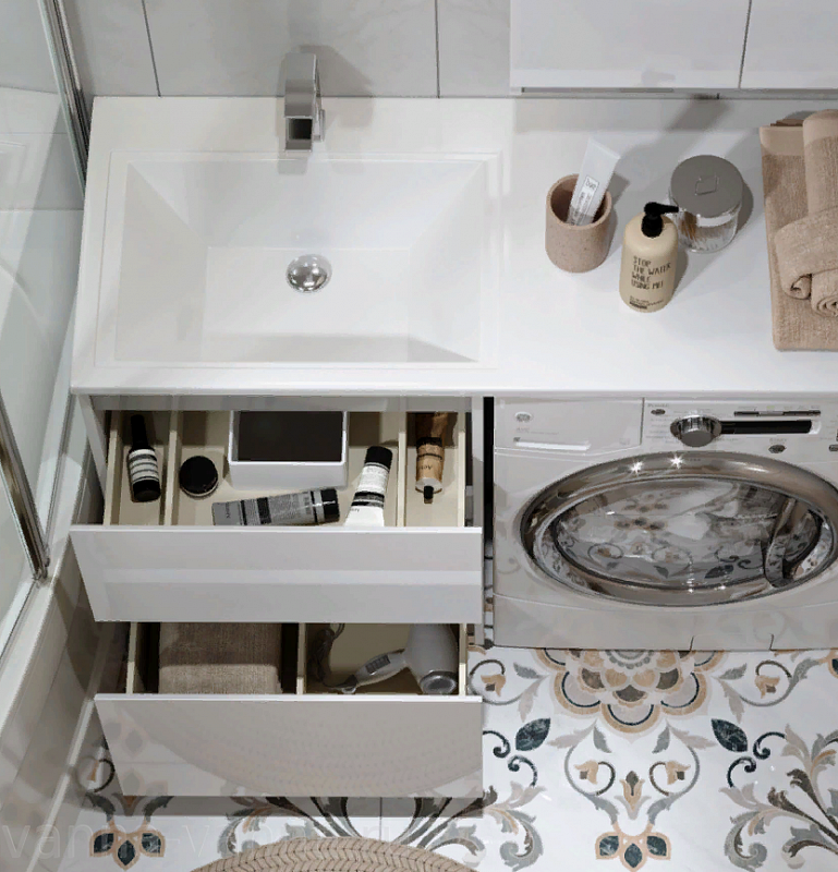 Тумба для ванной комнаты Soft Silver 120 - один из основных элементов дизайнерской коллекции мебели для ванных комнат Soft Silver. Тумба с раковиной для ванной сочетает в себе необходимый каждой хозяйке функционал: Столешницу под стиральную машину; Удобную раковину, изготовленную из экологически чистого камня с антигрибковым покрытием; Вместительные выдвижные ящики для хранения бытовых принадлежностей. Все это позволяет наиболее эффективно использовать небольшое пространство ванной комнаты. Основные характеристики тумбы: Цветовые варианты – белый + металлик; Покрытие – пятислойная система окраски глянцевой эмалью; Ящики «Hettich» - направляющие с доводчиками; Продуманная система организации пространства – съемные разделители в ящиках; Система креплений – L-образный навес; Опоры – резьбовая, регулируемая.