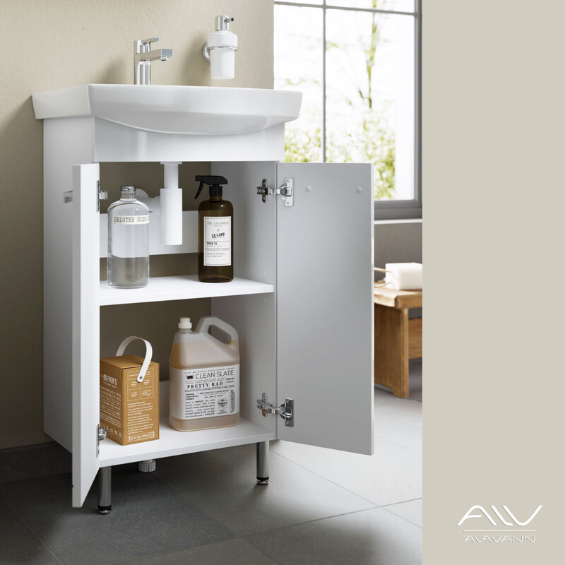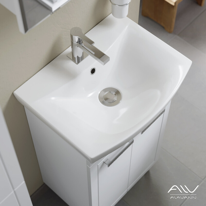 Гарнитур для ванной Vittoria 50 – выгодное решение для оптимизации небольшого окружающего пространства. Тумба максимально удобна в использовании, не занимает много места, позволяет компактно разместить бытовые принадлежности.