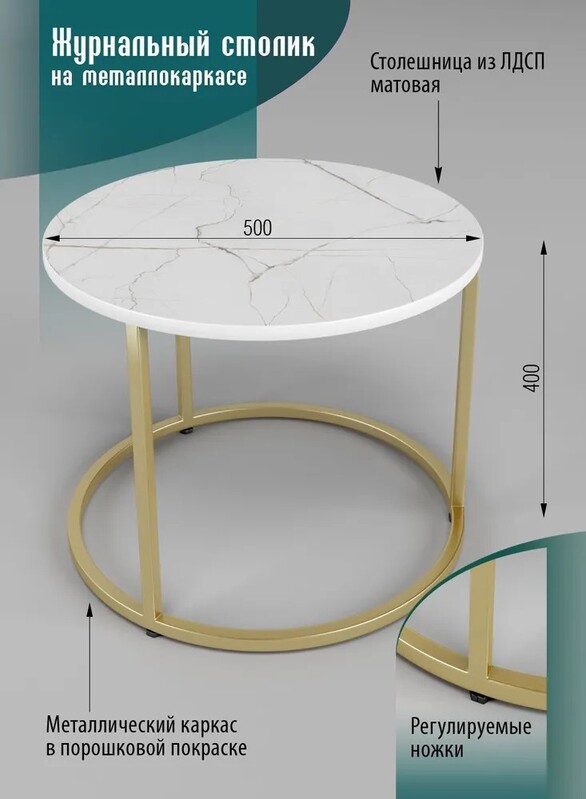 Журнальный столик «Соло» Белый/золото ЛДСП 500*500*400, рама металл