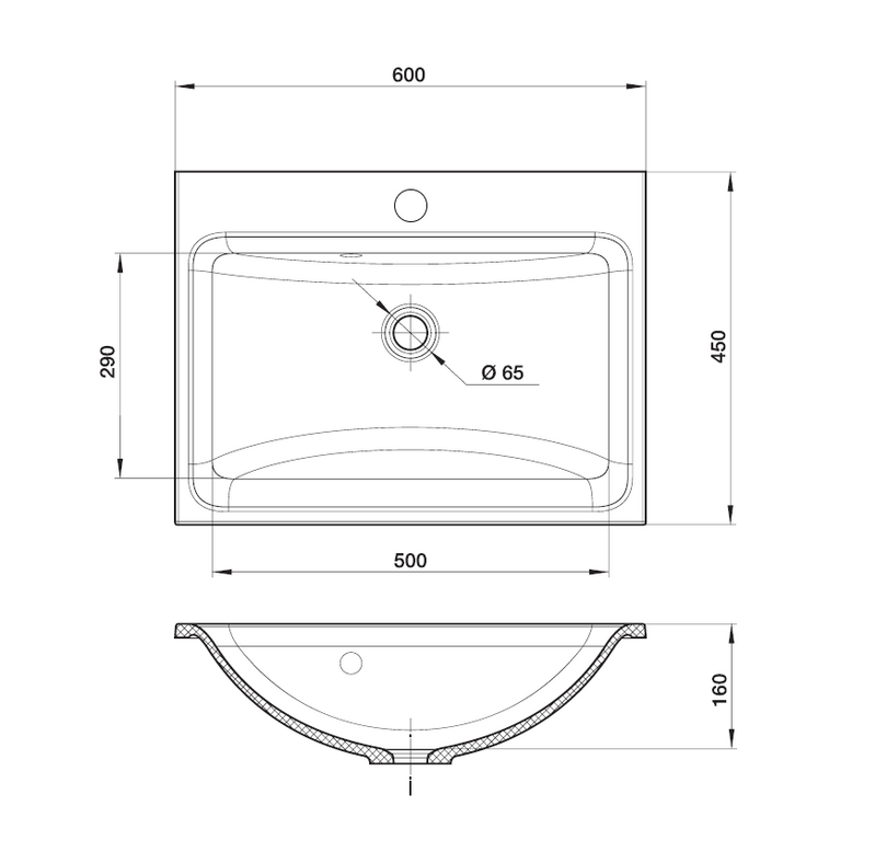 Мебельная раковина 600*450 без бортика РВ_600 (Sink 600)