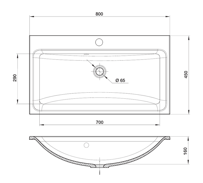 Мебельная раковина 800*450 без бортика РВ_800 (Sink 800)