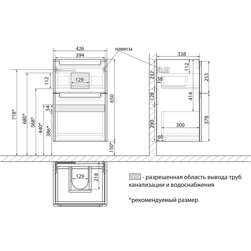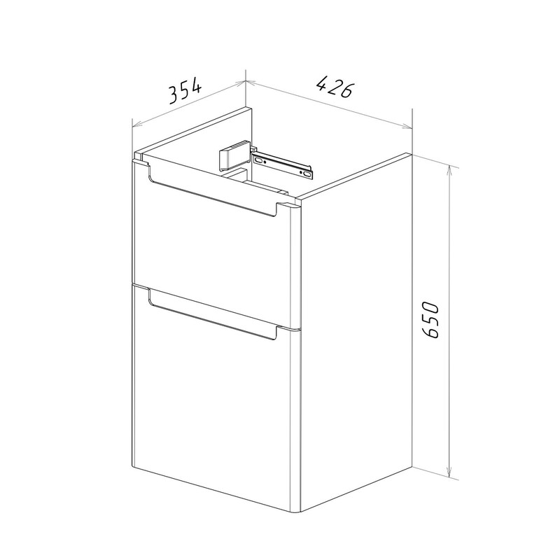 • Габариты без раковины (ШГВ): 426х354х650 мм;