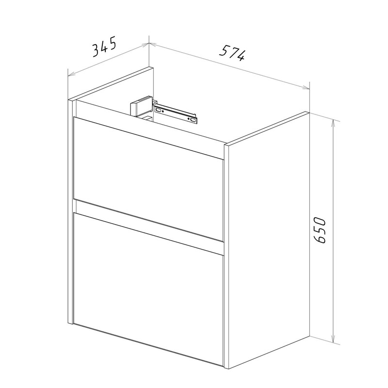 • Габариты без раковины (ШГВ): 574х345х650 мм;