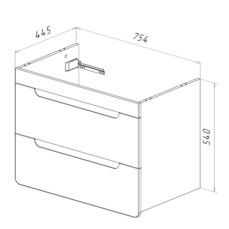 • Габариты без раковины (ШГВ): 754х445х540 мм;