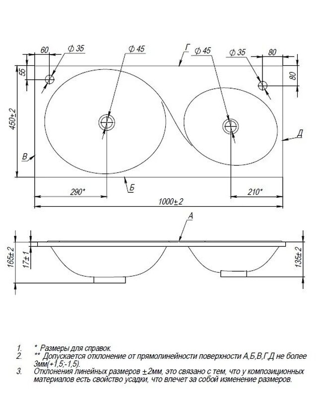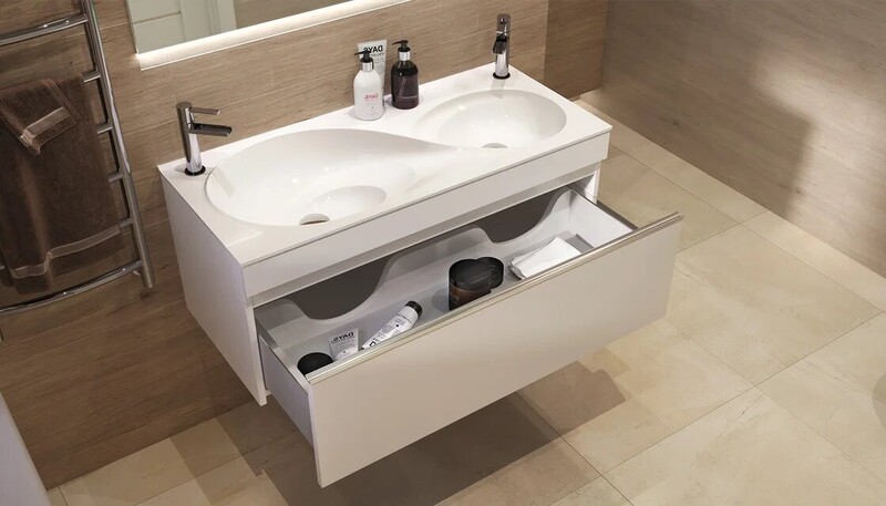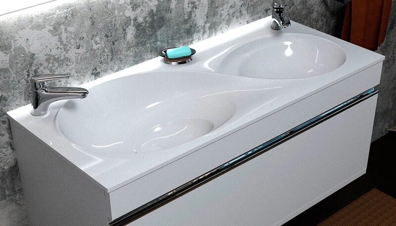 Умывальник "Otto 100" (литьевой мрамор, 1000х450х165) ДВОЙНОЙ встраиваемый
