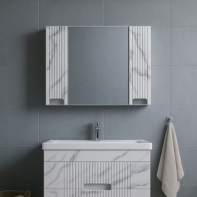 Зеркало-шкаф SANTREK HOME "Беладжио-80" (Белый мрамор) 2 дв. 800х700х145