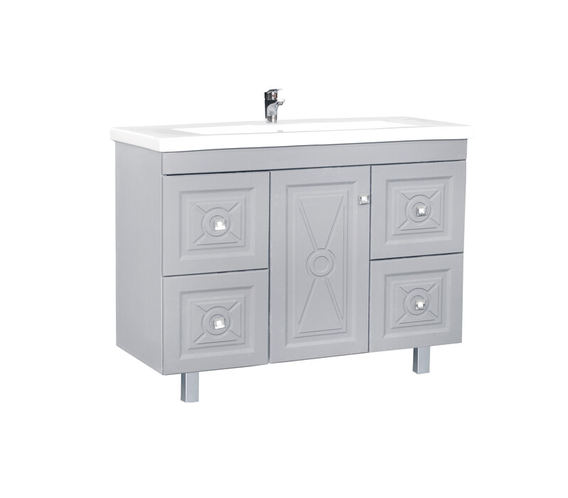 Подстолье SANTREK HOME "Клео-100" (Грей софт серый) 1 дверь 4 ящика под умывальник "Como-100"/"Миранда-100" 1000*780*430*