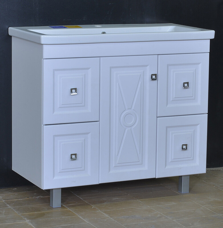 Подстолье SANTREK HOME "Клео-90" (Белый софт) 1 дверь 4 ящика под умывальник "Como-90"/ "Paola Mario 90" 900*780*430*