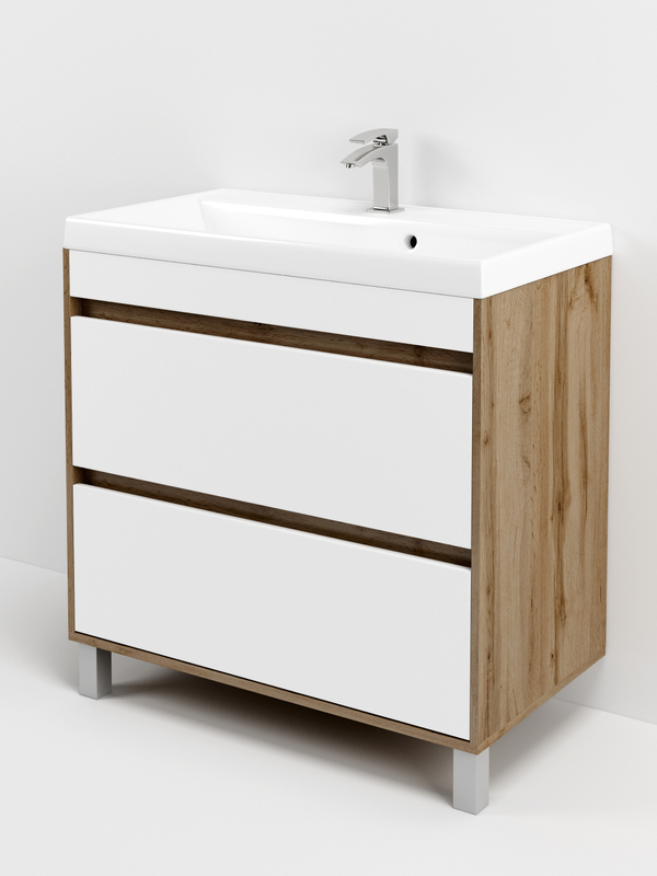 Подстолье SANTREK HOME "Альберо-80" (Дуб вотан/Белый софт) 2 ящика под умывальник "Paola Alba-80" 792х780х444
