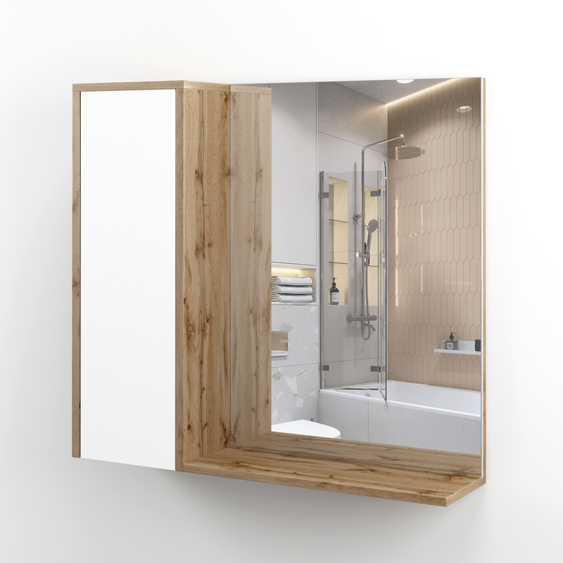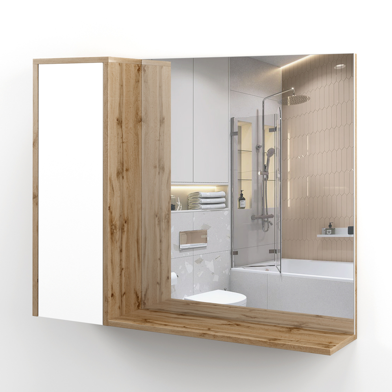Зеркало-шкаф SANTREK HOME "Альберо-80" (Дуб вотан/Белый софт) 1 дверь 800х650х165