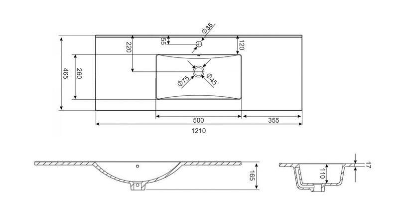 Раковина врезная HOLLER E120 (1210*465*165мм), белая