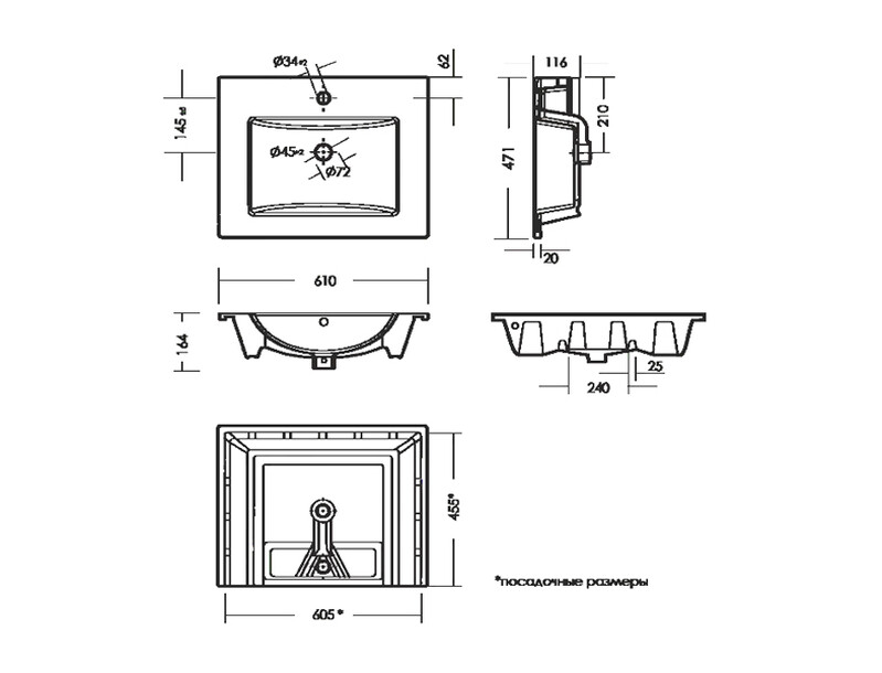 Умывальник Quadro 60 имеют наиболее универсальную форму и низкий бортик, поэтому не акцентируют на себе чрезмерное внимание. Коллекция представлена умывальниками шириной 600, 750 и 900 мм.